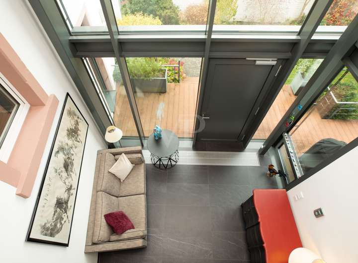 •3-fach verglaste Fenster (außen Alu/ innen Holz)