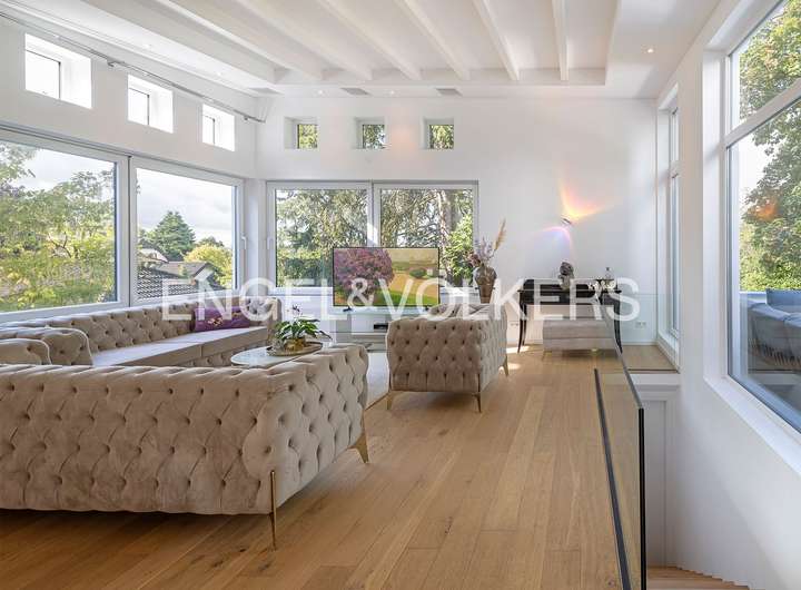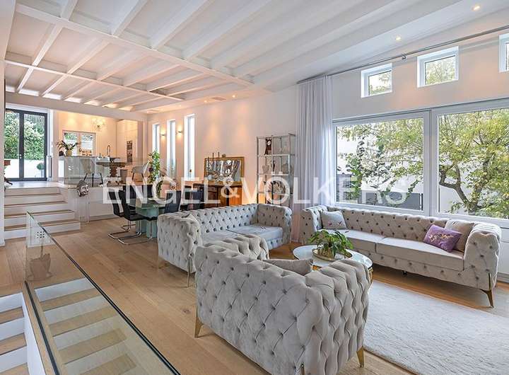 Die Raumaufteilung auf zwei Ebenen mit fünf bis sechs Zimmern, offener Küche und zwei Bädern ist ideal für eine Familie mit bis zu zwei Kindern oder ein gutsituiertes Paar mit viel Platzbedarf. Eine Einliegerwohnung im unteren Geschoss mit separatem Eingang sowie auch direkter Verbindung zum Hauptwohnbereich bietet größtmögliche Flexibilität. Sie ist vielseitig nutzbar, z.B. als Kindertrakt, Homeoffice, Unterbringung einer permanenten Haushaltshilfe oder auch separat zu vermieten.