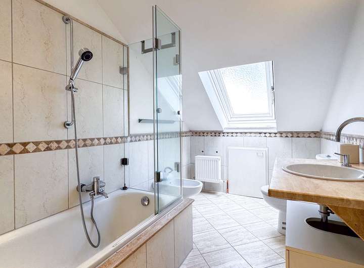 Der beheizte Keller ergänzt den Wohnkomfort mit einer Sauna inkl. Dusche, einer zusätzlichen Küche, zwei Hobbyräumen sowie einer Waschküche mit Zugang zum Garten. Eine neue, bereits bezahlte Gastherme ist ebenfalls Teil des Angebots und wartet auf ihren Einbau.