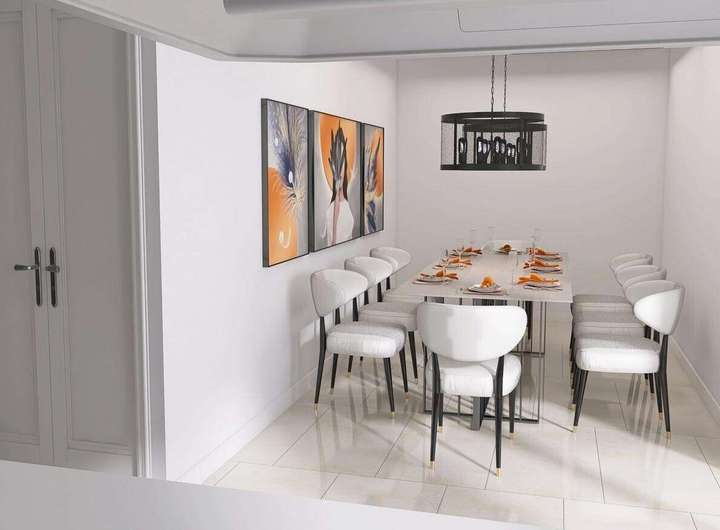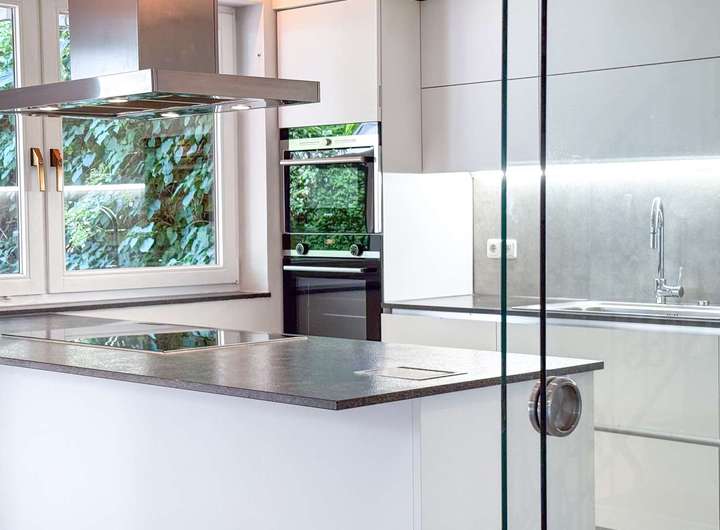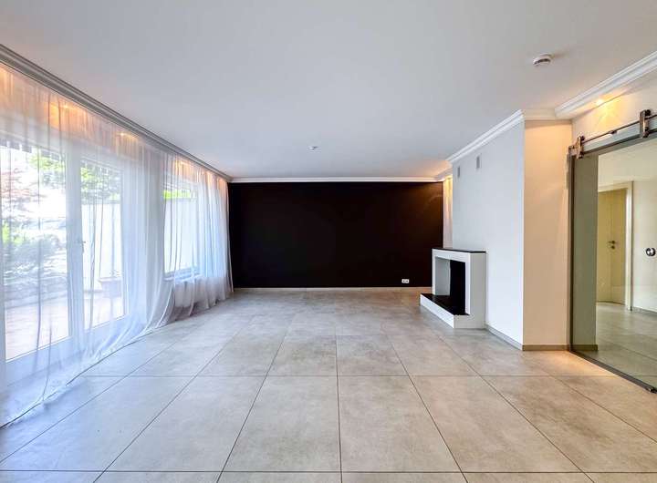 Im Erdgeschoss erwartet Sie ein großzügiger Wohnbereich mit Kamin, an dem Sie gemütliche Abende verbringen können. Auf der anderen Seite befindet sich die stilvolle italienische Designerküche, die mit Funktionalität und Stil begeistert, samt offenem Essbereich.