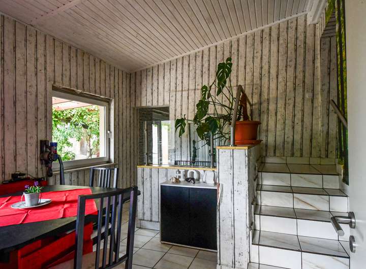 Dieses 1965 errichtete Einfamilienhaus ist mit seinen ca. 149,88 m² Wohnfläche großzügig und raffiniert geschnitten. Im Erdgeschoss finden Sie neben Windfang und Flur ein großes, über zwei Seiten belichtetes Wohnzimmer sowie eine mit ca. 36,76 m² große Küche, von dem eine Terrasse in den Garten abgeht. Ebenfalls auf dieser Ebene befindet sich das Badezimmer und ein Schlafzimmer.