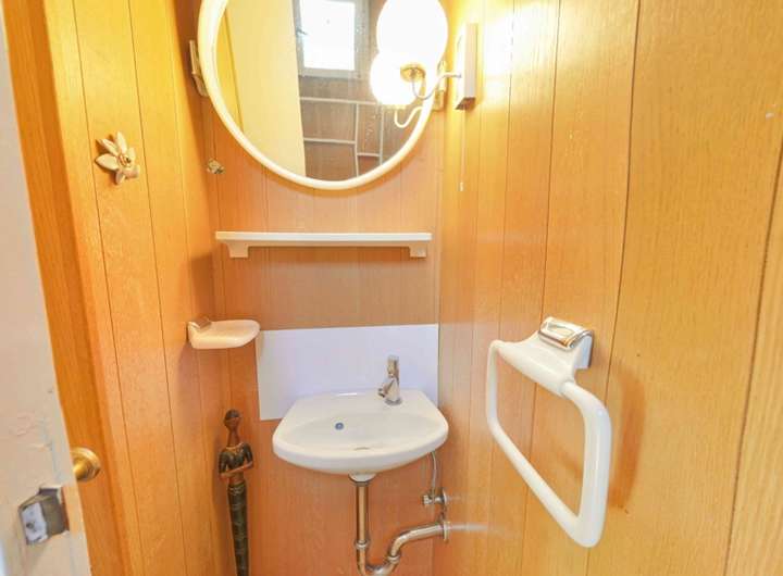 Das Badezimmer wurde mit Wanne, WC und Waschbecken ausgestattet. Sowohl das Bad als auch das Gäste-WC verfügen über Tageslicht, sind jedoch deutlich in die Jahre gekommen und sollten modernisiert werden.