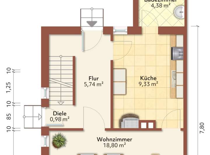 Die Architektur zeigt klassische Merkmale der Fischerhäuser dieser Zeit – ein schlichtes Satteldach, niedrige Geschosshöhen und eine einfache, funktionale Grundrissgestaltung. Viele historische Details, wie alte Holzbalken und Fensterrahmen, sind noch erhalten und können bei einer fachgerechten Sanierung wieder sichtbar gemacht werden.