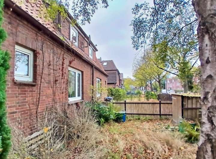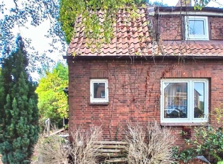 Nur wenige hundert Meter entfernt vom Airbus Werk Hamburg-Finkenwerder, befindet sich diese historische Doppelhaushälfte aus dem Jahr 1920, ein ehemaliges Fischerhaus, das den ursprünglichen Charakter des alten Elbvorortes noch heute widerspiegelt. Das Haus steht in einer der ältesten Wohnlagen Finkenwerders, unweit der Elbe, eingebettet zwischen traditionellen Backsteinbauten und alten Obstgärten.