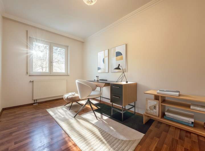 Schon beim Betreten spürt man die angenehme Atmosphäre: helle Räume, klare Strukturen und viel Platz für individuelle Wohnideen. Die insgesamt fünf Zimmer bieten Flexibilität für jede Lebenssituation – ob Schlaf-, Kinder-, Arbeits- oder Hobbyzimmer. Ergänzt wird das Raumangebot durch zwei vollwertige Badezimmer, ein separates Gäste-WC sowie eine praktische Küche.