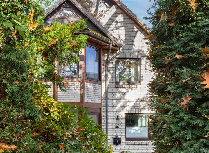 Dieses außergewöhnliche Reihenhaus in Hamburg-Wellingsbüttel verbindet elegantes Wohnen mit einer warmen, einladenden Atmosphäre, die besonders Familien anspricht. Die naturnahe Lage direkt am Waldrand, die hochwertige Massivbauweise sowie die Modernisierung in den Jahren 2009/2010 schaffen ein Zuhause, das sowohl stilvoll als auch behaglich ist. Schon die helle Klinkerfassade mit Holzdetails und der grüne Rahmen des Grundstücks lassen erkennen, dass es sich um eine besondere Immobilie handelt.