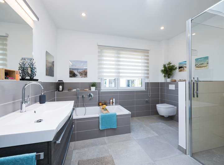 In einer Nische im Familienbad ist Platz für die Waschmaschine.