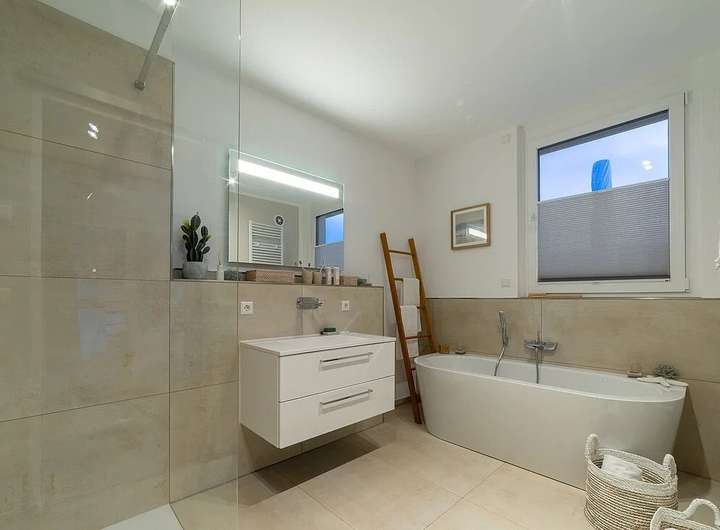 - Paket 2: Sanitärobjekte, Fliesen, Fensterbänke, Innentüren, Bodenbeläge und Tapeten
