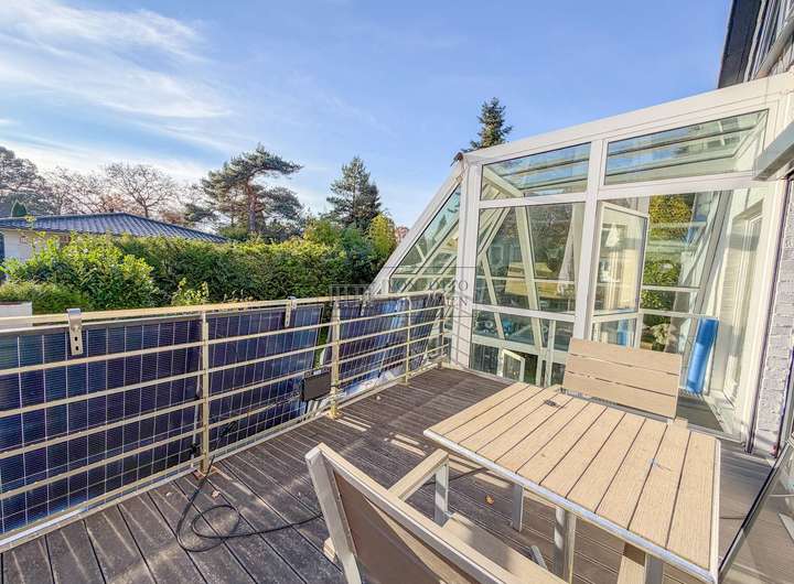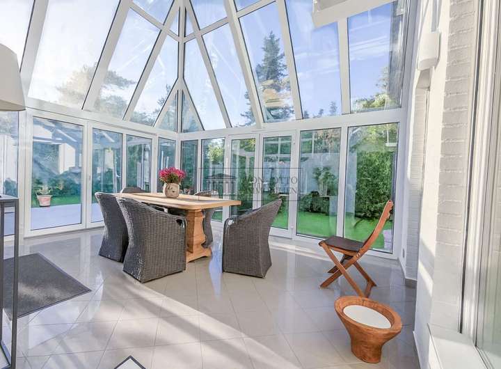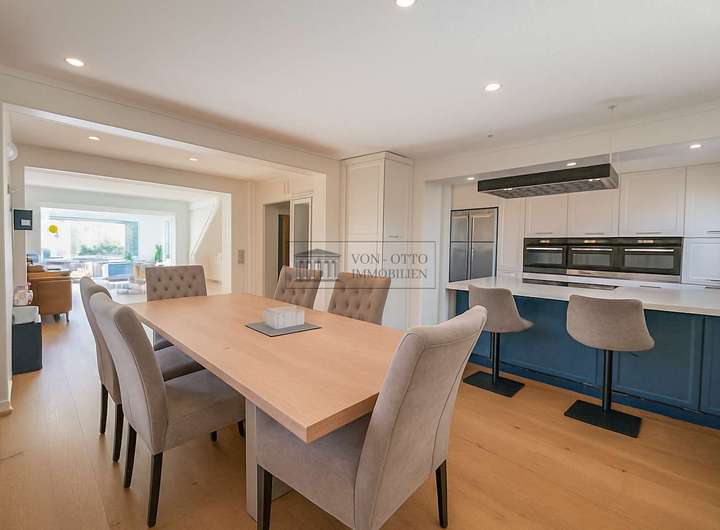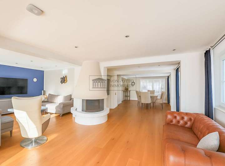 Das Haus überzeugt durch großzügige Raumaufteilung und einen durchdachten Grundriss: Im Erdgeschoss erwartet Sie eine moderne, offene Küche mit hochwertigen Markengeräten – der perfekte Ort für gemeinsames Kochen und gesellige Abende. Ein helles Wohnzimmer mit Kamin, ein stilvolles Esszimmer, ein elegantes Tageslichtbad sowie ein lichtdurchfluteter Wintergarten runden das Wohlfühlambiente ab.