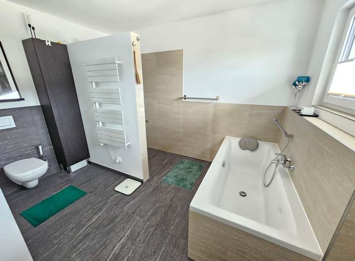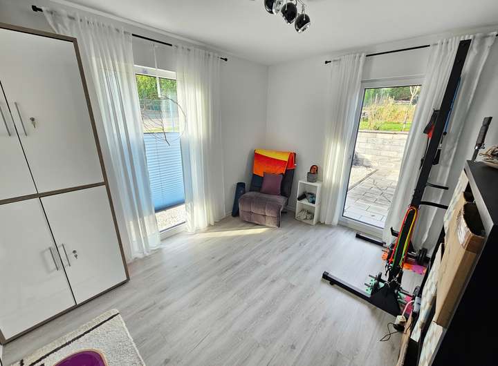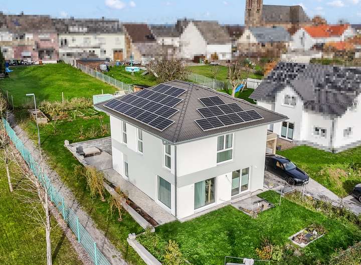 Die Bauweise als ELK-Haus in Holzständerkonstruktion sowie der KfW-55-Standard unterstreichen den Anspruch an Nachhaltigkeit und Energieeffizienz. In Kombination mit der Luft-Luft-Wärmepumpe, die nicht nur effizient heizt, sondern an heißen Sommertagen auch zur Kühlung genutzt werden kann, der Warmwasser-Luft-Wasser-Wärmepumpe und der zentralen Lüftungsanlage mit Wärmerückgewinnung entsteht ein zukunftsorientiertes Energiekonzept, das Komfort und Wirtschaftlichkeit perfekt verbindet. Die im Jahr 2023 installierte Photovoltaikanlage mit 15 kWp runden das moderne Energiekonzept ab und machen das Haus besonders attraktiv für technisch und ökologisch orientierte Käufer.