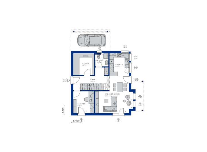 Mit der Ausbaustufe "Schlüsselfertig" erleben Sie einen stressfreien Bauprozess, bei dem Bien-Zenker den kompletten Hausbau für Sie übernimmt. Vom Fundament bis zur letzten Schraube kümmern wir uns um alles, sodass Sie sich ganz auf die Vorfreude auf Ihr neues Zuhause konzentrieren können. Im Preis sind alle notwendigen Leistungen enthalten, sodass keine Überraschungen auf Sie warten. Dies bedeutet nicht nur eine Ersparnis von Zeit und Nerven, sondern auch einen reibungslosen Ablauf, der Ihnen die Gewissheit gibt, dass Ihr Haus in den besten Händen ist. Nach der Fertigstellung können Sie sofort einziehen und Ihr individuelles Zuhause in vollen Zügen genießen.