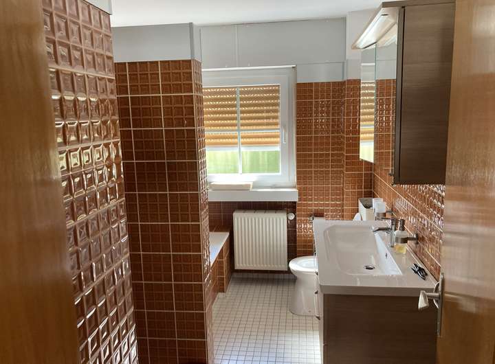Das im Jahr 1967 errichtete Zweifamilienhaus zeichnet sich durch eine schlichte und solide Architektur aus, die sehr viel Potential für maßgeschneiderte Lösungen bietet. Es präsentiert sich sowohl im Außenbereich als auch im Inneren in einem gepflegten Zustand und bietet eine Wohnfläche von insgesamt ca. 195 Quadratmetern, die sich auf acht Zimmer, zwei Küchen und zwei Bädern verteilt. Im Vollkeller (96m²) des Hauses finden sich großzügige Abstellräume, eine Sauna, ein Partykeller und weitere nützliche Räume. Trotz der Größe des Hauses und ansprechenden Grundriss fällt es durch sein zurückhaltendes äußeres Erscheinungsbild auf und verkörpert so ein echtes Understatement.