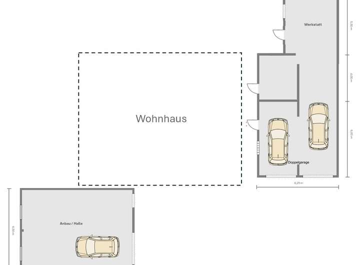 Es befindet sich auf einem ca. 760 Quadratmeter großen, nicht einsehbaren Grundstück, das viel Privatsphäre bietet. Neben dem Haus stehen eine großzügige Terrasse, eine am Haus angrenzender beheizbare Halle (49m²), eine Doppelgarage (71m²) mit großzügiger Nutzfläche, sowie zwei Stellplätze im Freien zur Verfügung.