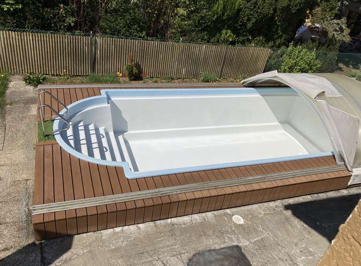 Der pflegeleichte Garten bietet ausreichend Platz für die Familie und lädt zu entspannten Stunden an der überdachten Poolanlage (3,5m x 7,8m und 1,5m tief) im Freien ein. Besonders hervorzuheben ist die sonnige Terrasse, die mit Grillplatz nach Süden ausgerichtet ist und sich perfekt für entspannte Momente anbietet.
