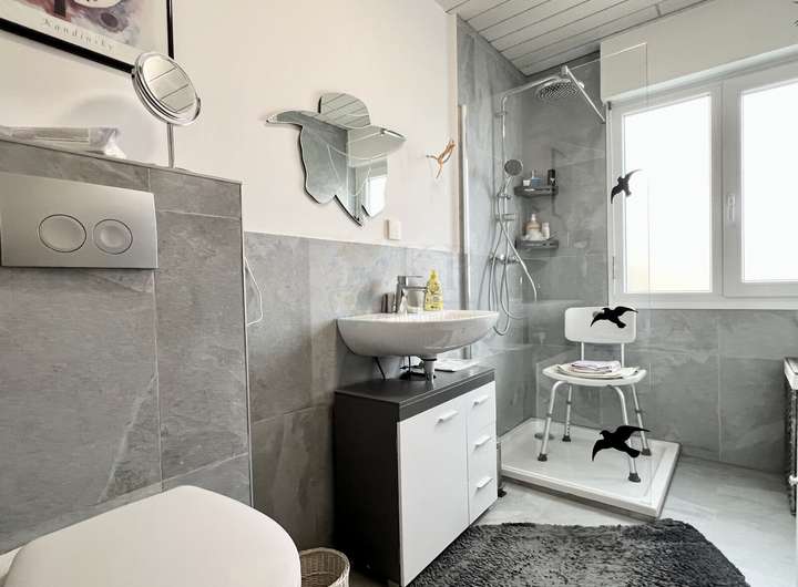 Die beiden Badezimmer sind mit Dusche und Tageslicht ausgestattet. Die Einbauküchen laden zum gemeinsamen Kochen und Genießen ein.