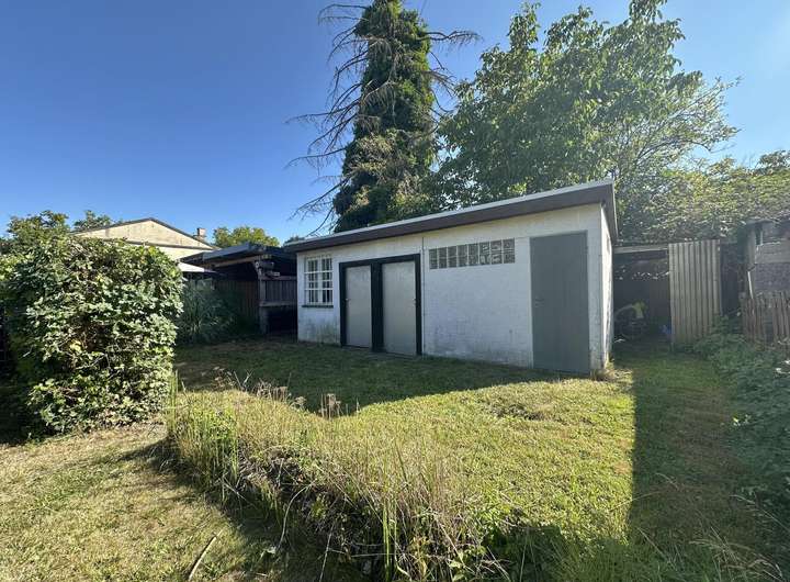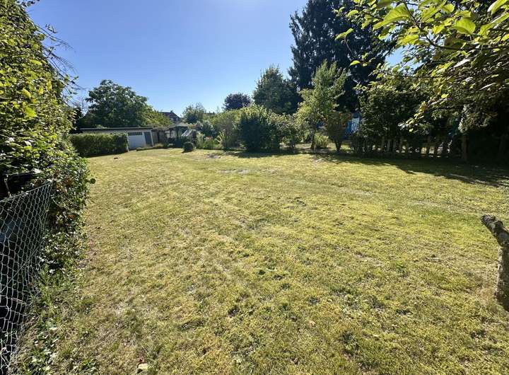 Das Grundstück bietet eine Größe von ca. 693 m². Auf dem hinteren Teil des Grundstücks ist ein gemauertes Sommerhaus mit 2 Räumen und einem Geräteraum.