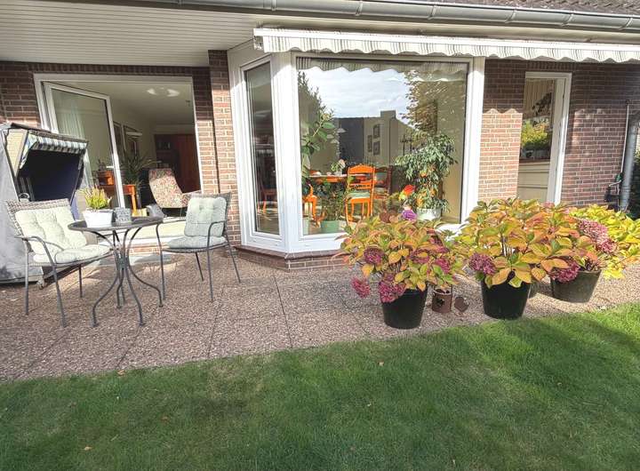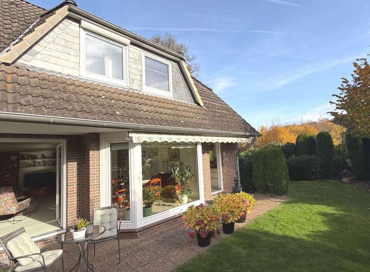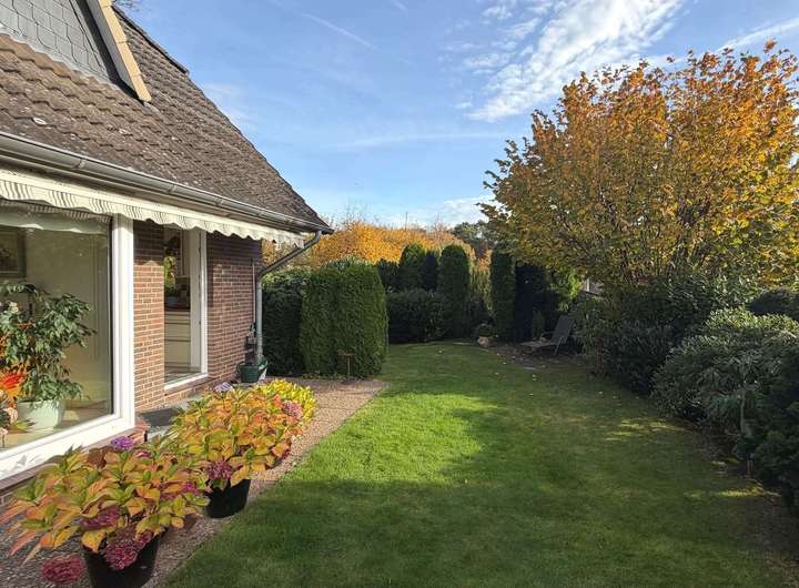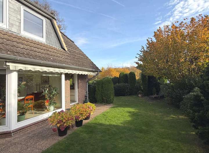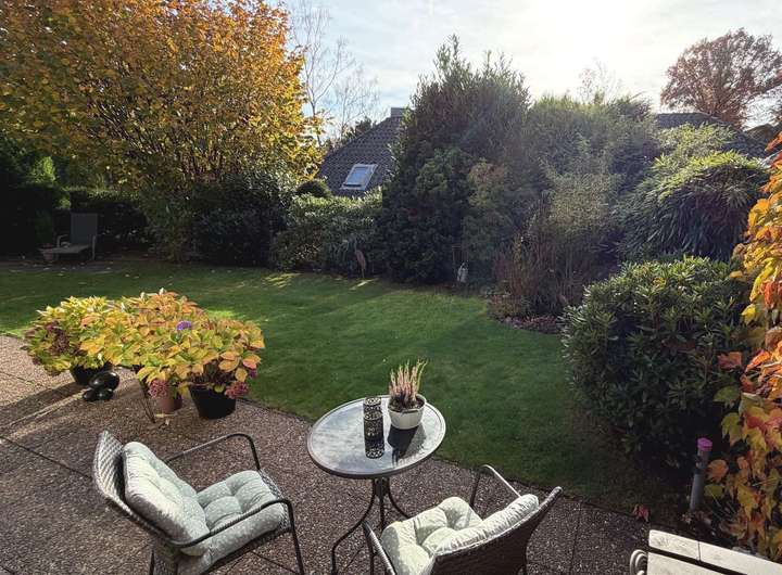 Besonders attraktiv ist der große, gepflegte Garten, der viel Platz für Erholung im Freien bietet. Eine großzügige, teilweise überdachte Terrasse lädt zum Entspannen ein.
