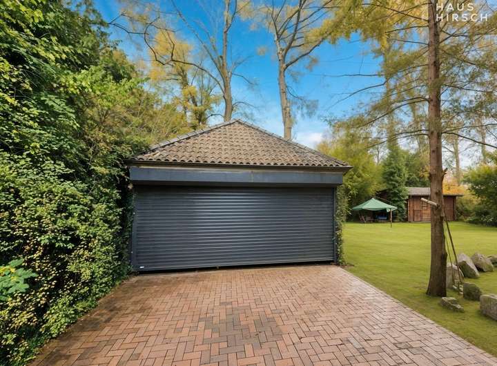 Die große Doppelgarage mit elektrischem Rolltor, angrenzendem Geräteschuppen und umfangreichem Bodenbereich, eine Wallbox zum Laden von E-Fahrzeugen sowie ein gemütliches Gartenhaus lassen keine Wünsche offen und runden das Angebot ab.