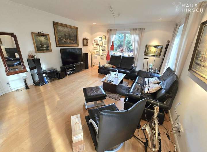 Dieser Wohntraum liegt in einer ruhigen Anliegerstraße des begehrten Hamburger Stadtteils Rissen – in unmittelbarer Nähe zum Golfplatz Falkenstein und zur Elbe – und verbindet damit städtische Nähe mit einem entspannten Wohnambiente im Grünen.