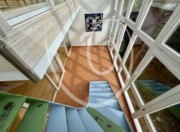 Diese Immobilie bietet ein außergewöhnliches Wohnkonzept über mehrere Ebenen hinweg – mit viel Licht, Weitblick und naturnaher Lage. Ideal für Menschen mit einem Sinn für besondere Architektur und dem Wunsch nach großzügigem, individuellem Wohnen.