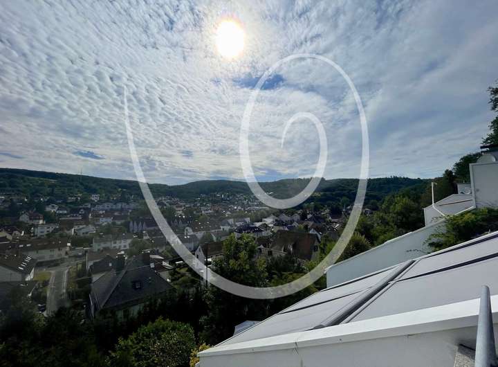 Das Reihenhaus liegt in einer ruhigen, naturnahen Wohngegend direkt am Waldrand. Die erhöhte Berglage bietet Ihnen sowohl einen direkten Blick ins Grüne als auch eine weite Aussicht über die bestehende Nachbarbebauung hinweg in die Ferne.