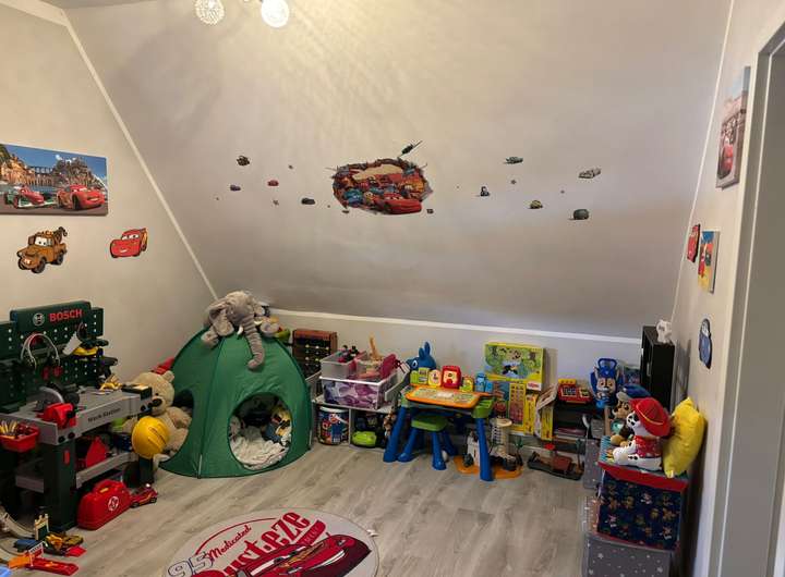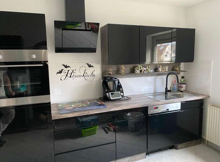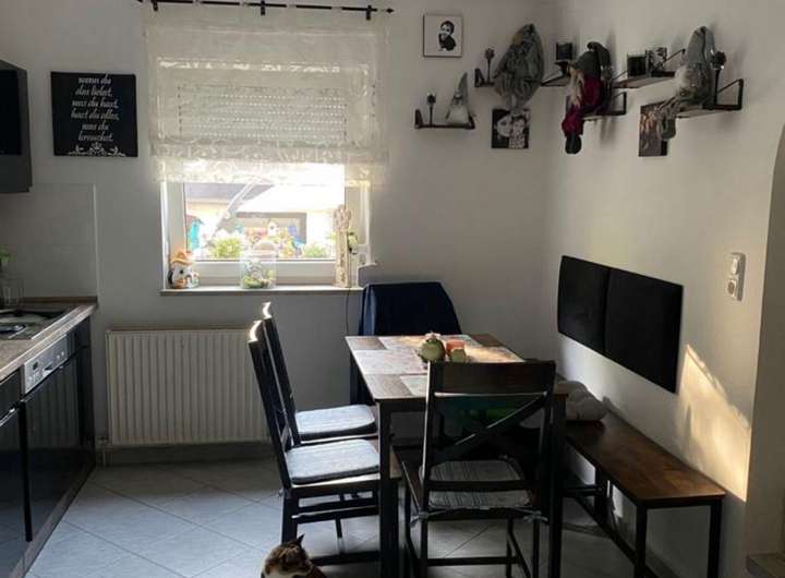 Hier stehen Ihnen 3 Schlafzimmer, eine Wohnküche mit einer schönen modernen Einbauküche, ein kleines Badezimmer, eine Gäste-Toilette sowie weitere Kellerräume zur Verfügung.