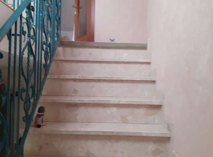 Das Gäste-WC im EG bietet zusätzlich Platz für Waschmaschine und Trockner. Über die helle Marmortreppe gelangt man ins Obergeschoss, wo sich ein großes Badezimmer mit Badewanne, separater Dusche, WC, Bidet und breitem Doppelwaschtisch befindet. Die weiteren drei Räume eignen sich als Schlaf-, Kinder- oder steuerlich absetzbare Büro-Zimmer.