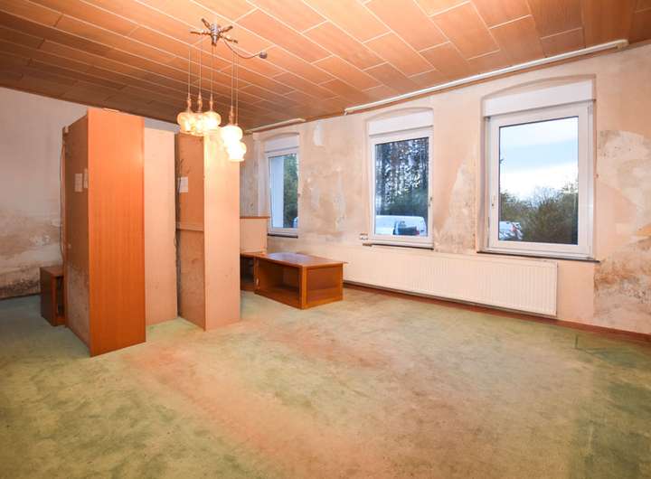 Viel Raum für Ideen: Sanierungsbedürftiges Zweifamilienhaus mit Nebengebäude und großem Garten. Dieses großzügige Haus bietet mit ca. 200m² Wohnfläche und insgesamt 8 Zimmern eine hervorragende Grundlage für individuelle Wohnträume. Dank der vorhandenen Raumaufteilung lässt sich die Immobilie flexibel nutzen - sowohl als großes Einfamilienhaus als auch als Zweifamilienhaus mit zwei separaten Wohneinheiten. Das Haus befindet sich in einem sehr renovierungsbedürftigen Zustand, bietet jedoch eine solide Basis für eine umfassende Modernisierung und die Möglichkeit, Wohnideen nach eigenen Vorstellungen umzusetzen. Bereits vorhandene Brennwertthermen aus dem Jahr 2012 sowie eine Wandisolierung zur Straßenseite schaffen energetische Grundlagen. Besonders attraktiv sind das große Grundstück mit ca. 886m², das viel Platz für Gartenliebhaber und Familien bietet sowie das Nebengebäude mit Hobbyraum und weiteren Räumlichkeiten, das ideal für Freizeitprojekte genutzt werden kann. Dieses Objekt vereint großzügige Fläche, flexibles Nutzungspotential und ein weitläufiges Grundstück und wartet darauf, in neuem Glanz zu erstrahlen.