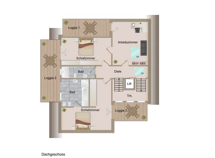 Drei Schlafzimmer, drei Bäder, Gäste-WC