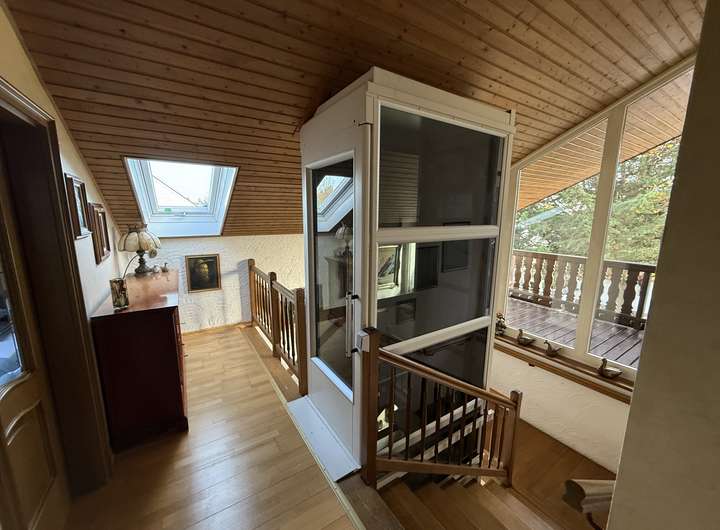 Das Haus verfügt über drei Schlafzimmer (jeweils mit Balkon), drei Bäder und ein Gäste-WC, ein Atelier im ehemaligen Poolbereich, einen Personenaufzug, Garage, zwei Stellplätze und einen Garten mit Terrasse.
