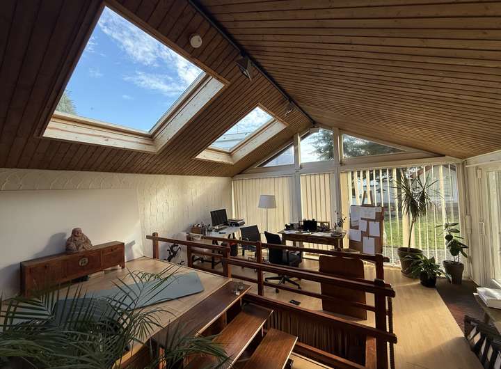Diese hochwertig gebaute Architektenvilla in Eschborn-Niederhöchstadt bietet auf ca. 285 m² Wohnfläche und rund 390 m² Gesamt-Wohn-Nutzfläche außergewöhnlich viel Raum für Familie, Beruf und kreative Nutzung.Große Fensterflächen, Terrakotta-Böden, ein offener Küchenbereich mit Hauswirtschaftsraumsowie zwei Kamine schaffen eine warme, einladende Atmosphäre.