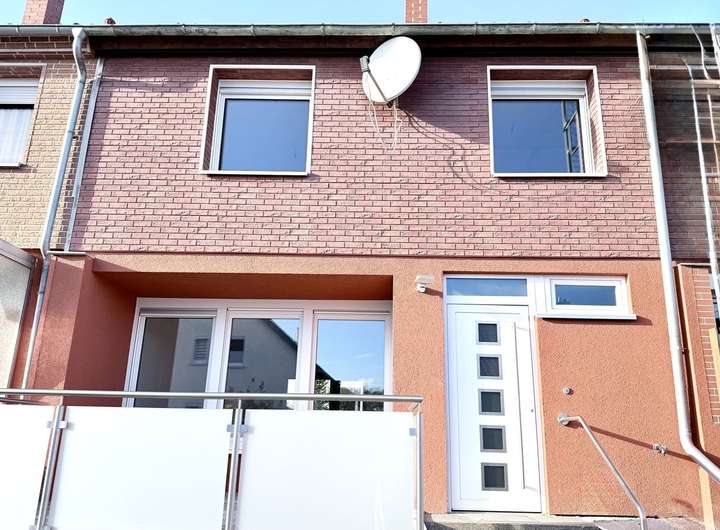 Vor dem Haus lädt eine kleine Terrasse zum Verweilen ein, während der gepflegte Garten zusätzlichen Platz zum Entspannen oder Spielen bietet. Die Außentreppe vom Keller wurde in diesem Jahr erneuert. Beheizt wird das Haus seit 2015 mit einer Erdgasheizung. Ebenfalls im Jahr 2015 wurden die Fenster ausgetauscht und die Außenfassade neu gedämmt, was zur Energieeffizienz und zum gepflegten Erscheinungsbild beiträgt.