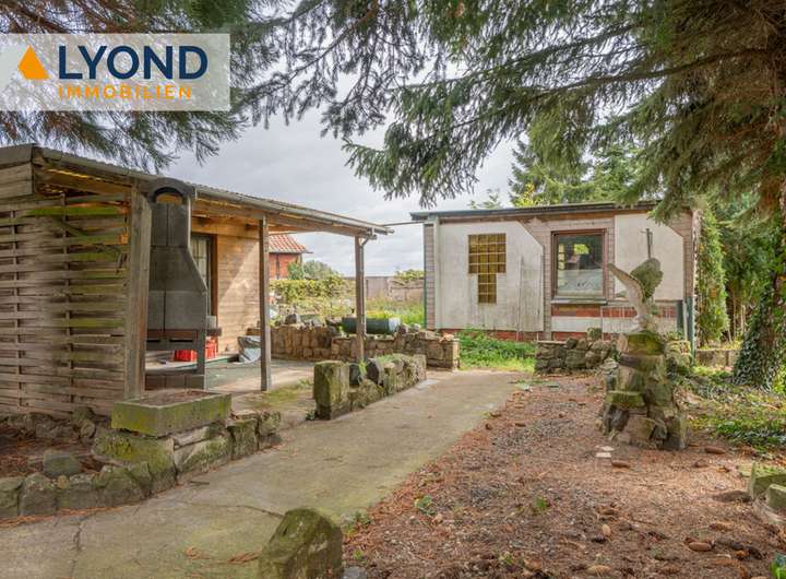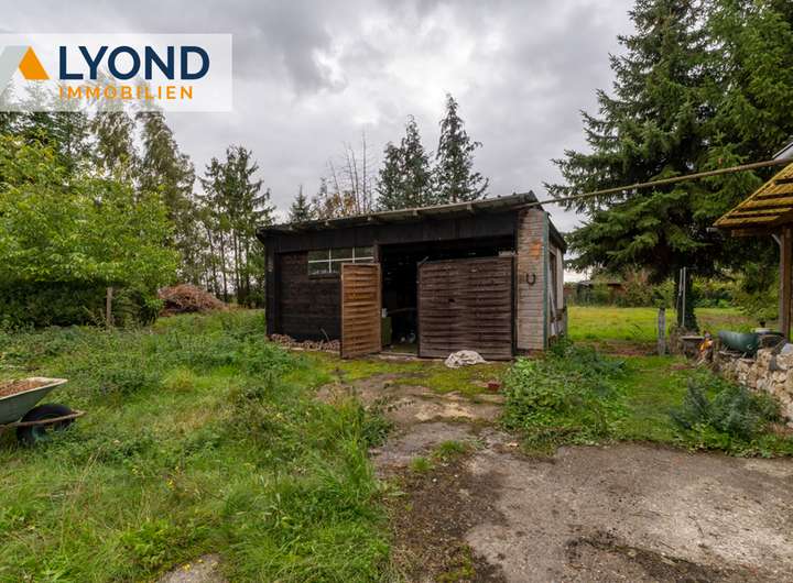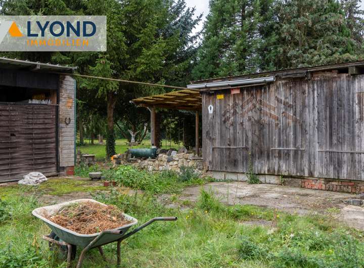 - Separat auf dem Grundstück: Holz-Bungalow mit ca. 40 m², komplett renovierungsbedürftig – z. B. nutzbar als Gästehaus, Büro oder Atelier