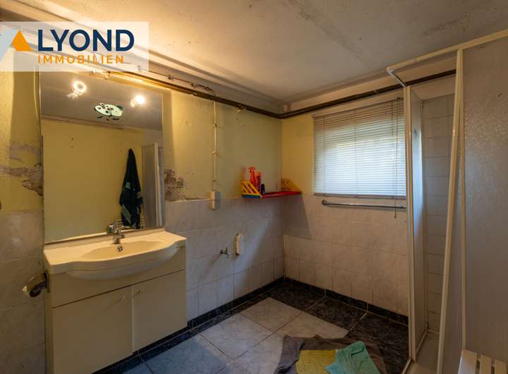 Die Ausstattung zeigt sich in einem soliden Grundkörper mit Teilböden in Laminat, Stein und Fliesen, jedoch stehen umfassende Modernisierungen an: Die alten Holzfenster müssen erneuert werden, die Elektrik ist vollständig neu zu planen und die Gasheizung mit Gastank sollte kritisch geprüft oder modernisiert werden – energetisch besteht hier erheblicher Nachholbedarf. Erfreulich ist die Außenlage und Raumreserve auf dem Grundstück: Neben dem Hauptgebäude befindet sich ein separat stehender Holz-Bungalow mit ca. 40 m², der komplett renovierungsbedürftig ist und ideal als Gästehaus, Büro oder Atelier umzubauen wäre. Zusätzlich bietet ein großes, umschlossener Carport die Option, diesen Bereich als weiteren Wohn- oder Nutzraum zu etablieren.