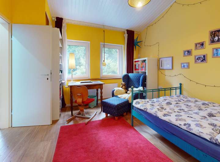 ◼︎ In den Jahren 2019 bis 2021 wurde das Haus komplett energetisch saniert. Außenwände, Dach, Kellerdecke und Fundament wurden gedämmt, neue Fenster und Türen eingebaut.