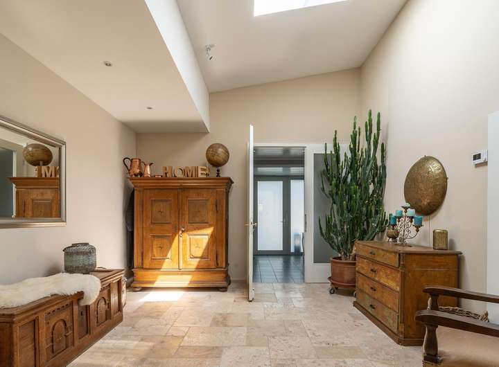 ◼︎ Zwei Decken-Oberlichter bringen viel Licht in die hohen, repräsentativen Räume von Diele und Küche.