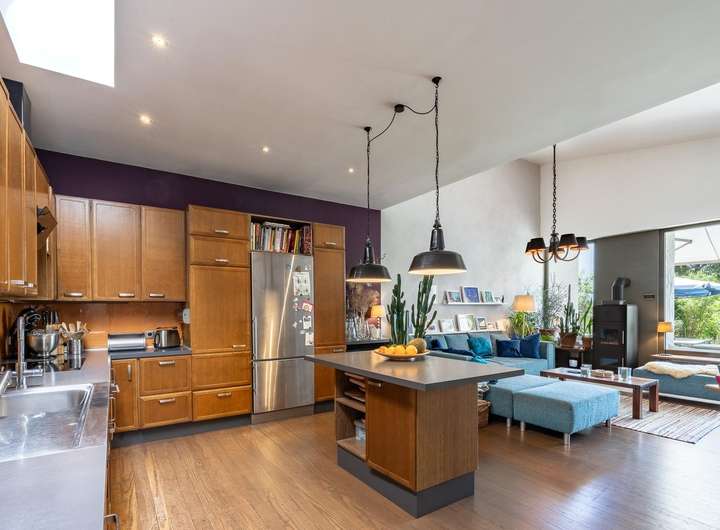 ◼︎ Eine neue Erdgasheizung mit Pufferspeicher wurde installiert und integriert einen wassergeführten Holzvergaserofen, der das Haus bei Bedarf autark vom Gasnetz macht. Er dient nicht nur als zusätzliche Wärmequelle, sondern auch als optisches Highlight für gemütliche Stunden.