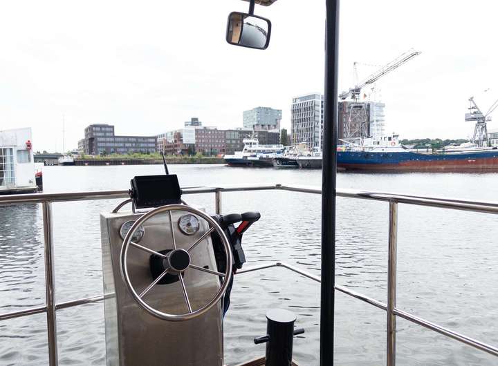 Derzeit liegt das Hausboot in Hamburg Harburg. Genießen Sie die ruhige Atmosphäre mit einem herrlichen Ausblick.