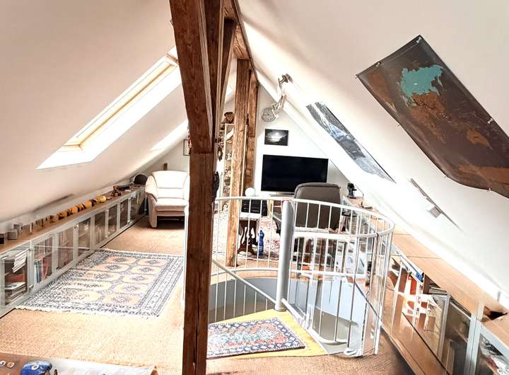 Im ersten OG befinden sich vier weitere helle Räume, Bad, WC sowie zwei Balkone. Das zweite OG mit weiteren vielfältig nutzbaren Räumen ermöglicht über eine moderne Wendeltreppe den Zugang zum perfekt ausgebauten und sehr hellen Dachstudio.