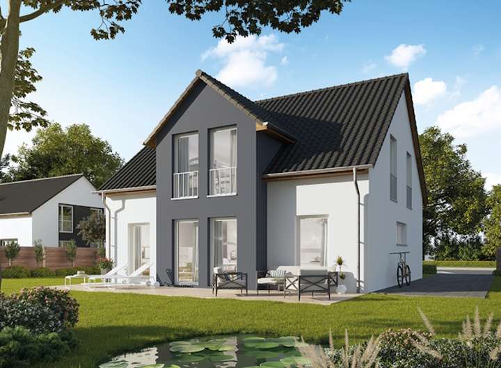 Zuzüglich Baunebenkosten, Hausanschlüssen, Außenanlagen und eventuell weiterer Anschlusskosten.