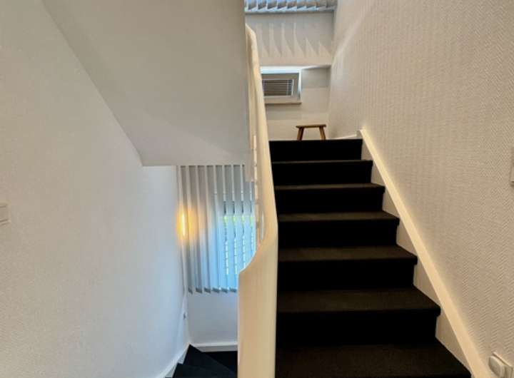 2023: Neues Laminat im Dachgeschoss, Treppe mit Sisal-Teppichboden, neue Gaszentralheizung