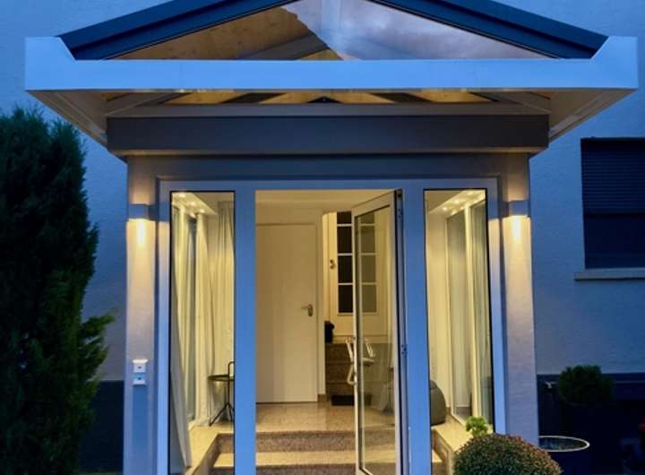 2025: Neue Dachfenster inkl. Rollläden, neuer Einsatz im Kachelofen, neues Vordach über dem Eingang