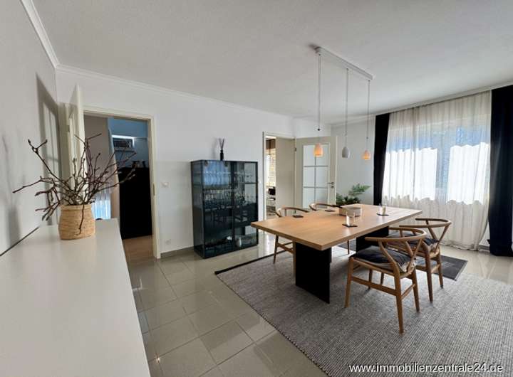 Hochwertige Materialien wie Parkett-, Fliesen- und Laminatböden schaffen ein behagliches Wohnambiente. Außenjalousien an den Fenstern sorgen für ein modernes Erscheinungsbild und ein angenehmes Lichtspiel im Innenbereich.