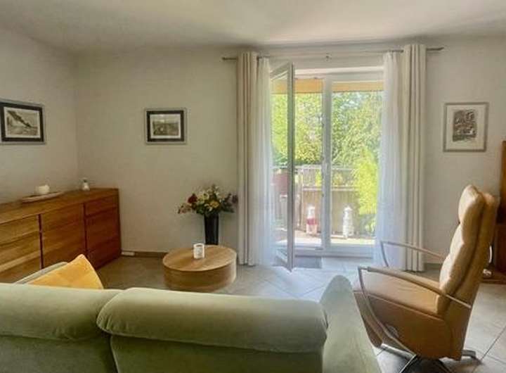 Die großzügig geschnittene Wohnung (ca. 108 m2) im Erdgeschoss und die beiden Apartments im Dachgeschoss (mit jeweils eigenem Zugang, Küche u. Bad) bieten Raum für unterschiedlichste Wohnkonzepte.