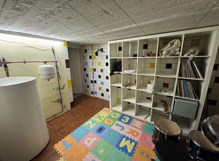 Im Keller befindet sich ein weiteres Badezimmer, ausgestattet mit einer Badewanne und einem Handwaschbecken. Ein weiterer Kellerraum bietet zusätzlichen Stauraum. Außerdem befindet sich im Keller der Heizungsraum.