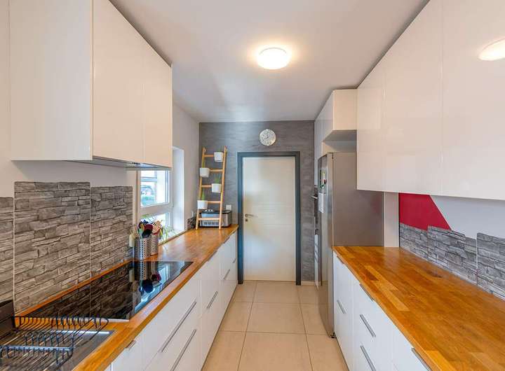 Ihnen und Ihrer Familie steht ein lichtdurchfluteter, 35 m² großer, Wohn-Essbereich und separate Küche mit angegliedertem Abstell-/Vorratsraum zur Verfügung.