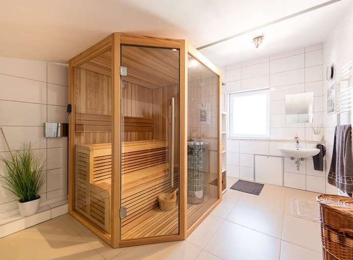 - Tageslicht-Bad mit Dusche und integrierter Sauna