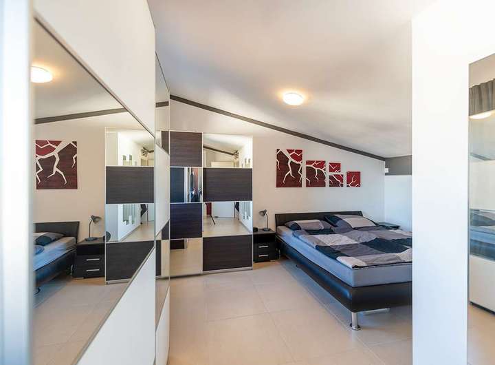 Das Dachgeschoss verfügt über ein weiteres, großzügiges Zimmer und ein Tageslicht-Bad mit integrierter Sauna.