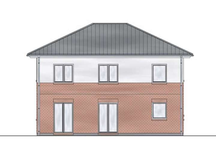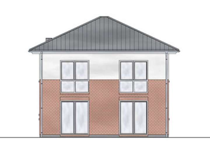 2-geschossiges Einzelhaus mit Walmdach (Dachneigung 35 Grad).