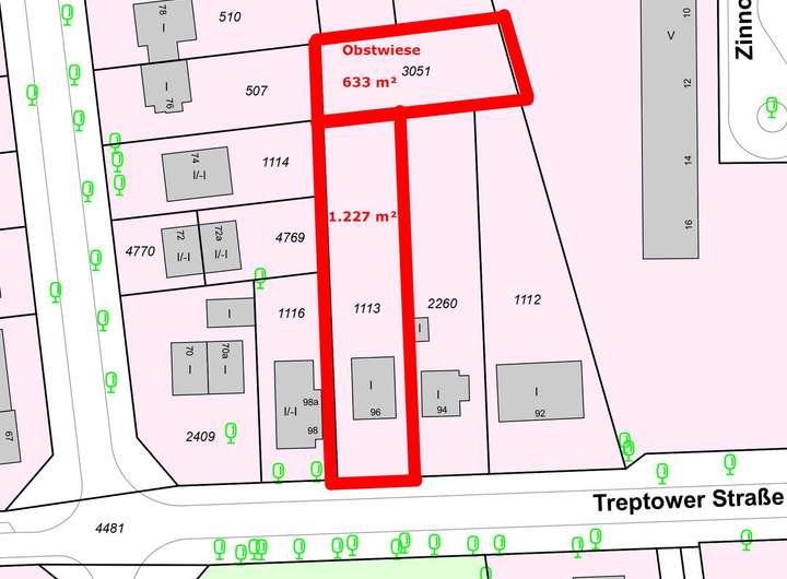 Es besteht die Möglichkeit die angrenzende Obstwiese (633 m² siehe Flurkarte) mit zu erwerben.